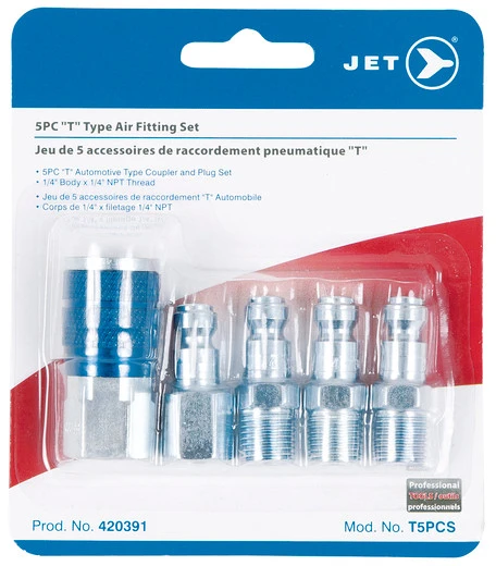 Be the first to review “Jet 420391 – (T5PCS) 5 PC T Air Fitting Set – 1/4″ Body X 1/4″ NPT” Cancel reply
