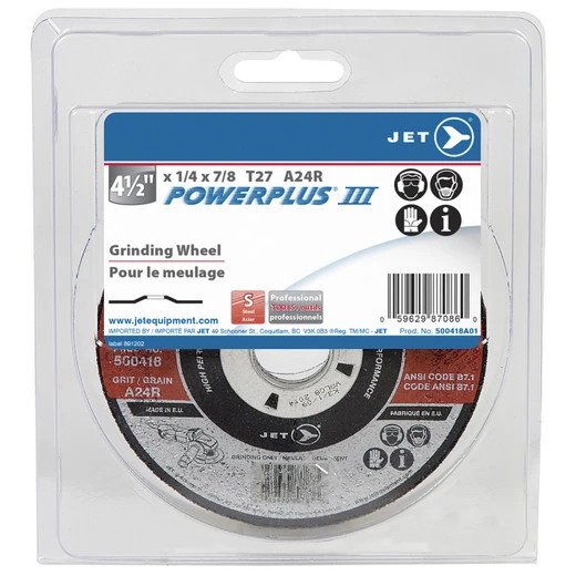 Be the first to review “Jet 500418A01 – 4-1/2 X 1/4 X 7/8 A24R POWERPLUS T27 Grinding Wheel – Clamshell Package” Cancel reply
