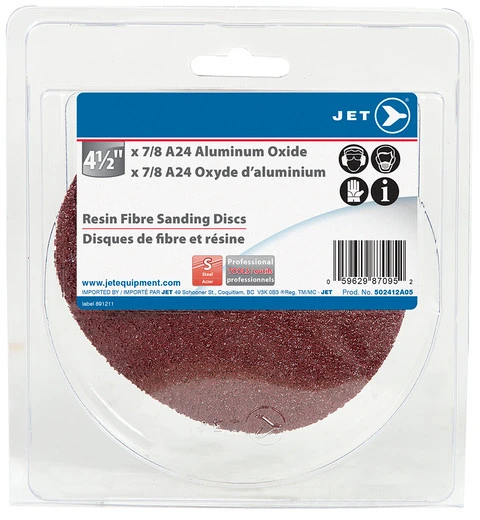 Be the first to review “Jet 502412A05 – 4-1/2 X 7/8 A24 Aluminum Oxide Resin Fibre Sanding Disc – Clamshell Package” Cancel reply