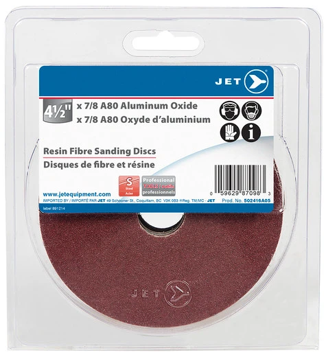 Be the first to review “Jet 502416A05 – 4-1/2 X 7/8 A80 Aluminum Oxide Resin Fibre Sanding Disc – Clamshell Package” Cancel reply