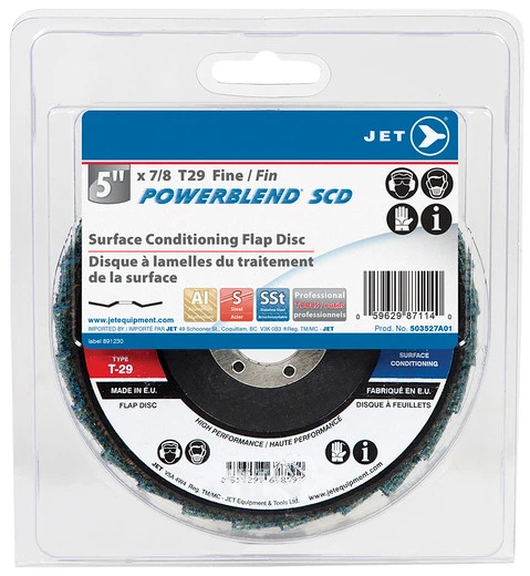 Be the first to review “Jet 503527A01 – 5 X 7/8 Fine POWERBLEND SCD T29 Surface Conditioning Flap Disc – Clamshell Package” Cancel reply